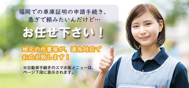 福岡県全域での車庫証明の申請や古物商許可等の警察許認可全般、自動車手続や建設業・宅地建物取引業(宅建業)等の許認可全般を専門の行政書士が代行致します。